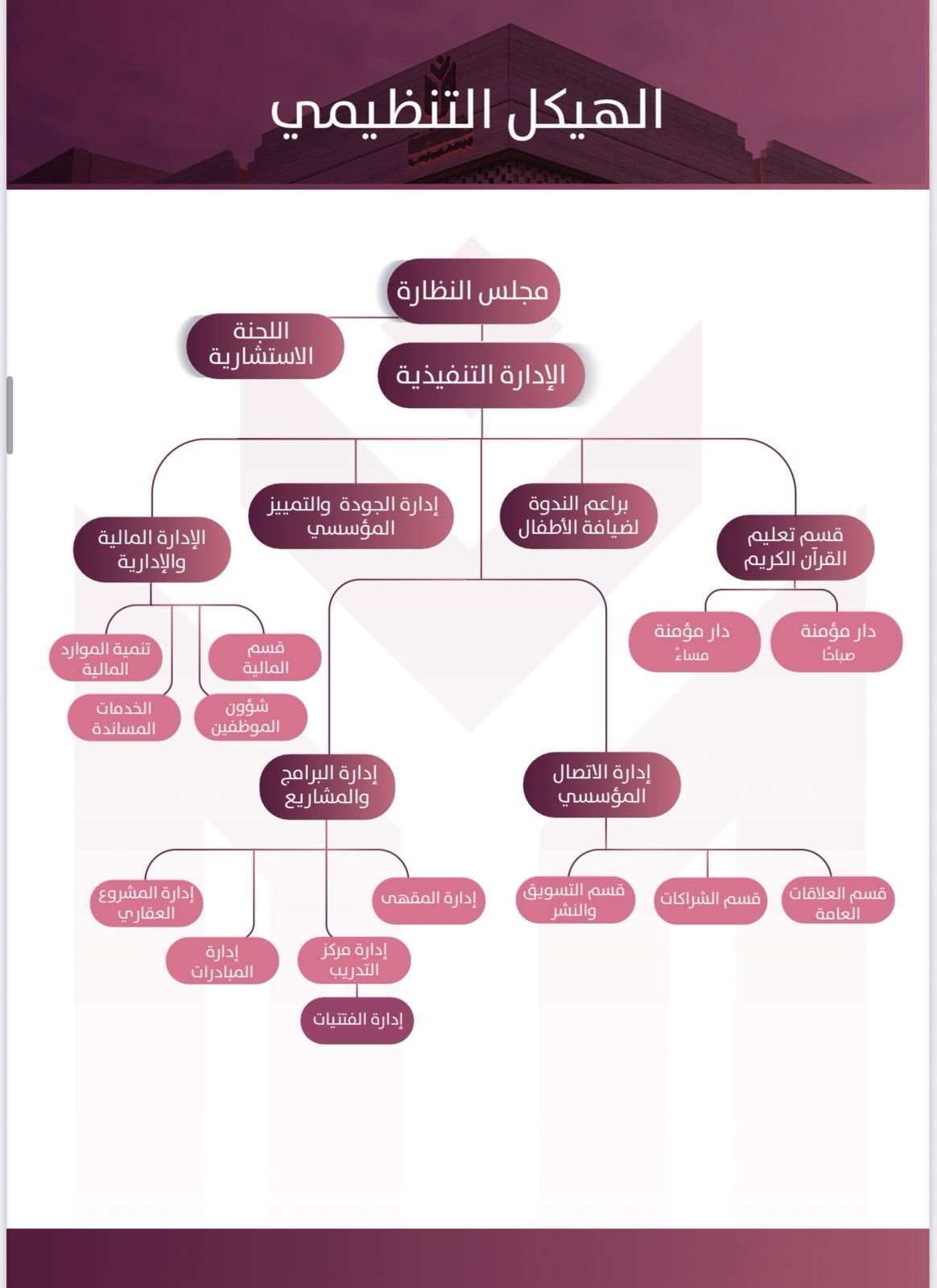 عرض بصري للهيكل التنظيمي المعتمد لوقف مؤمنة.